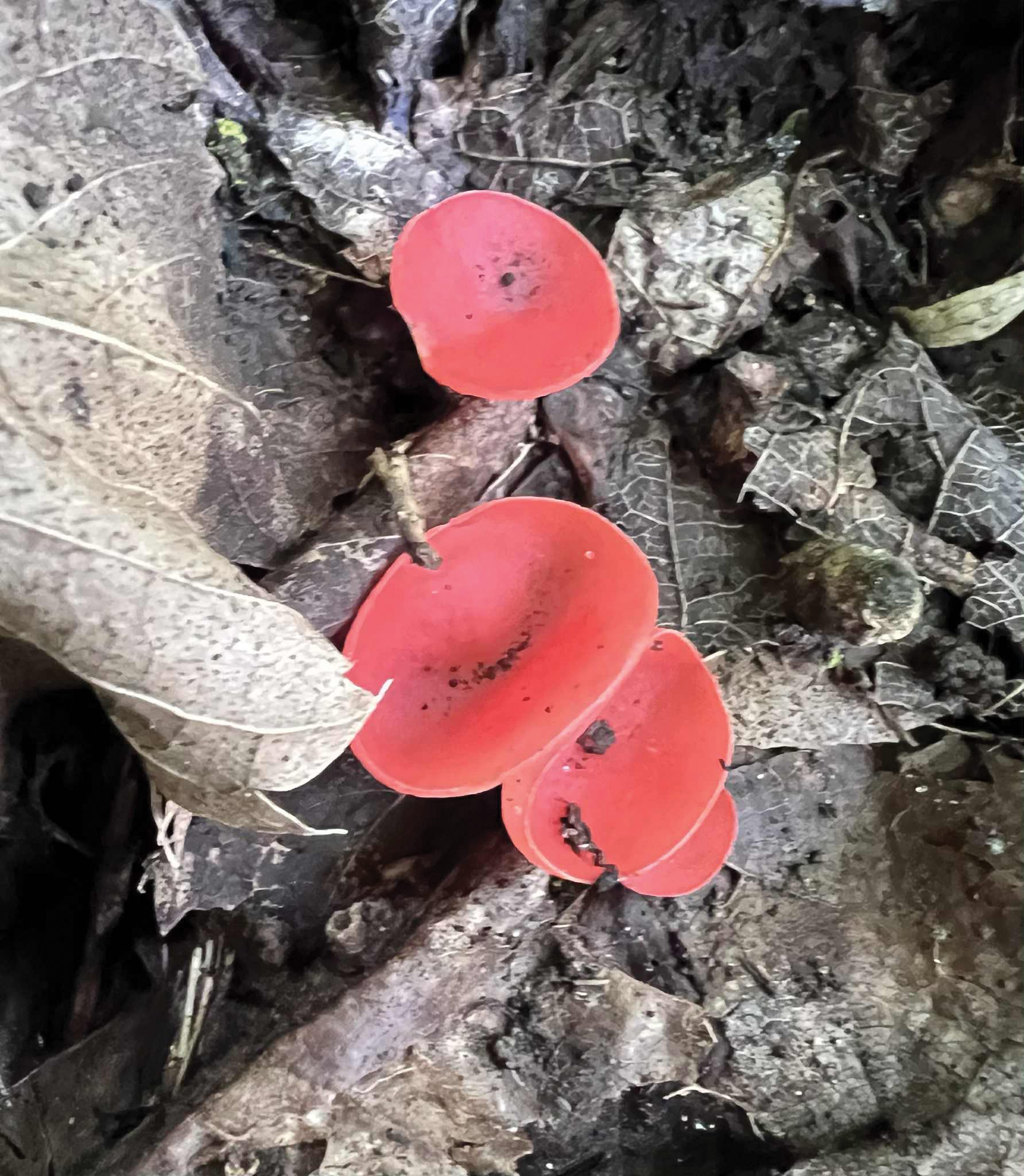 After a long winter of low sun and dampness, mushrooms and fungi start popping up in the wet forest as well. A first shot of spring color comes from the tiny, delicate scarlet elfin cup whose bright red color pops out on the trail. If you’re lucky and have the eye for it, morels lurk in the leaf litter for those who enjoy an earthy mushroom treat.