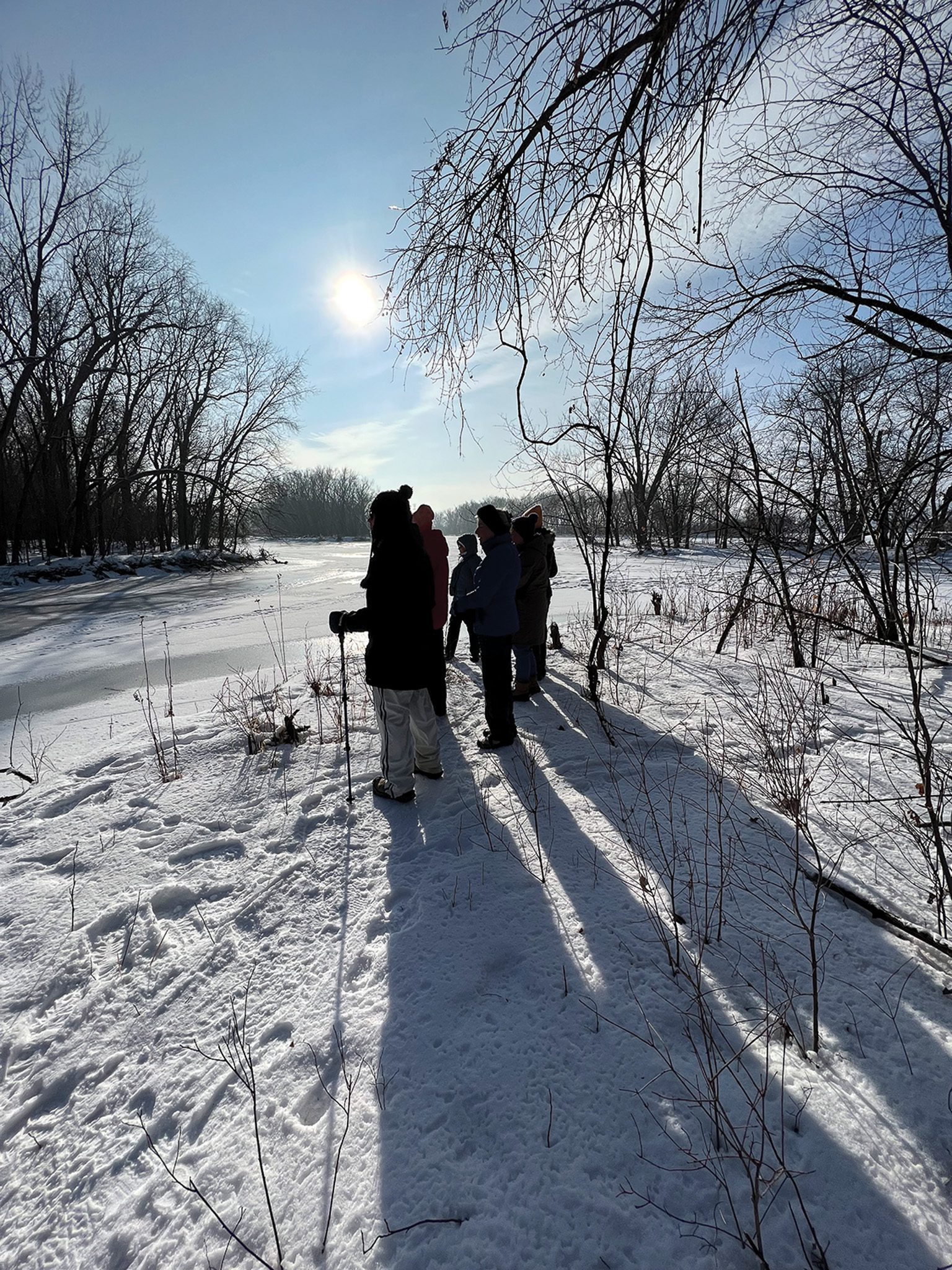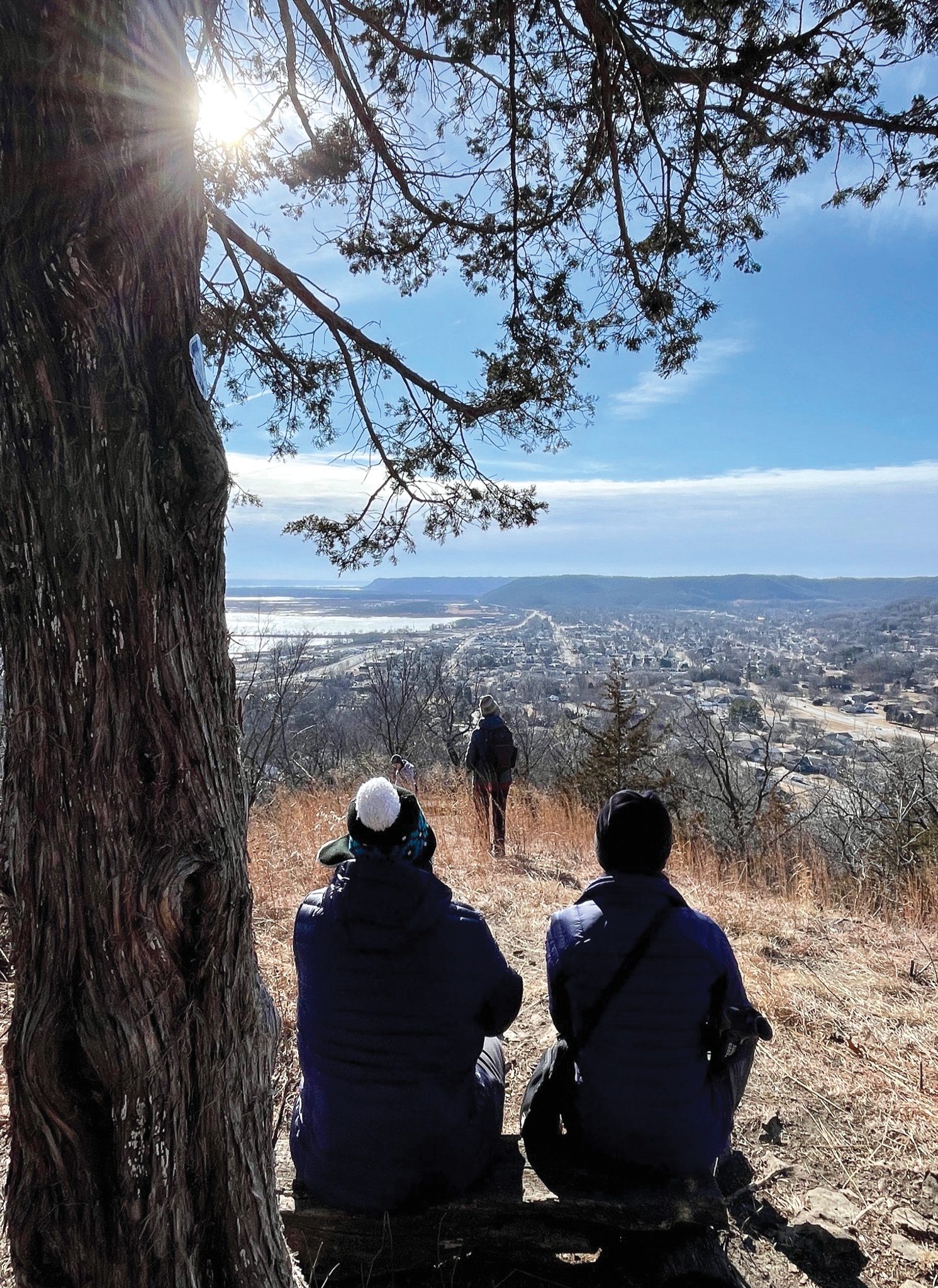 To begin your winter hiking, choose start times in the “heat” of the day. Look for trails that have views of the river, interesting rock formations, nearby bluffs, or deer trails to explore. On a windy day, try coniferous forests or bluffside hikes that take you below the rims to gain protection. If you have a sunny day with little wind, choose a blufftop and enjoy the vistas.