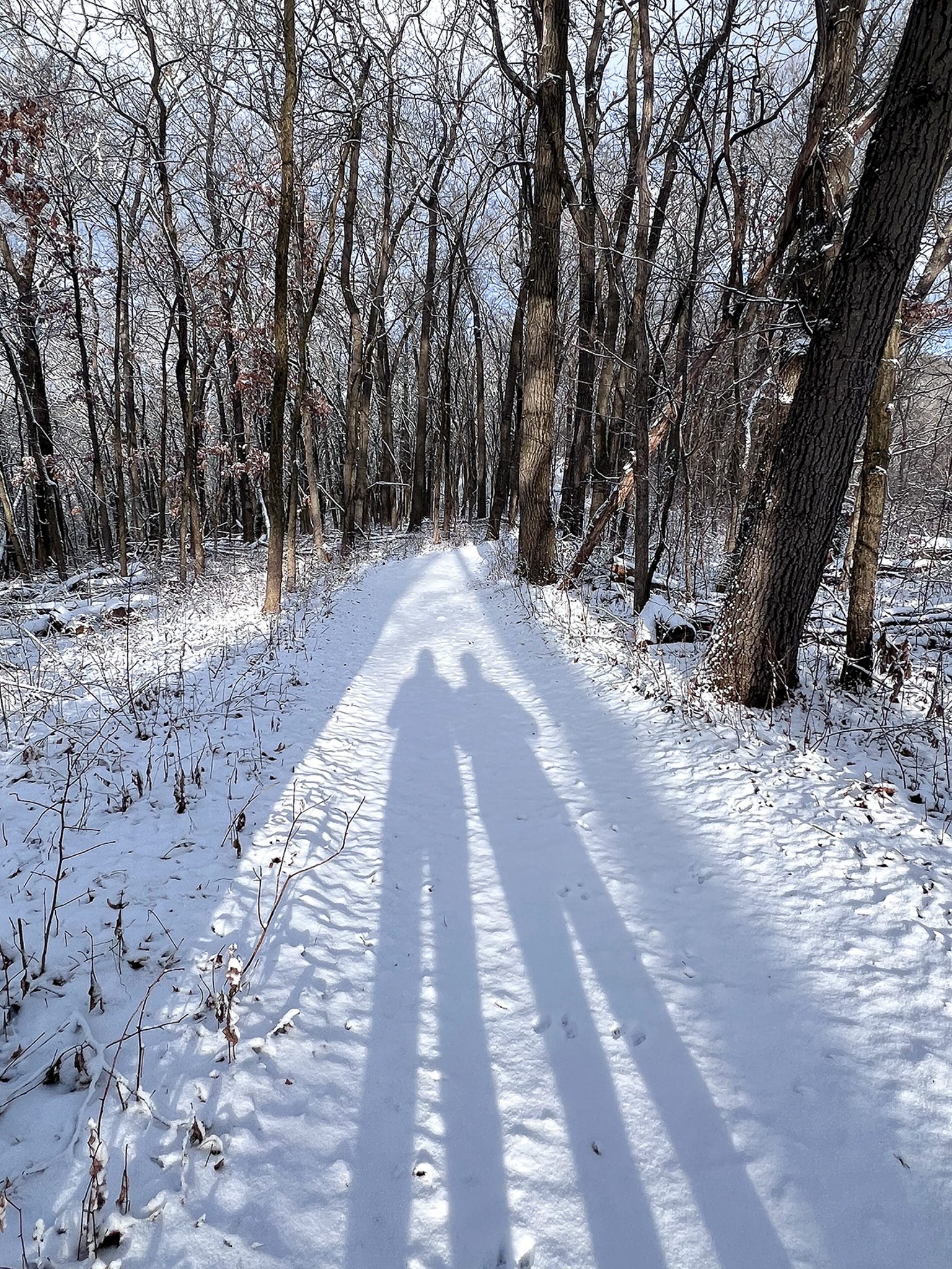 If you are hiking in snow on shared trails, remember trail etiquette. Avoid freshly groomed trails used for cross-country skiing or winter biking. Stay to the right or left of the groomed trail. When crossing ski or bike tracks, lift your feet (or snowshoes) high to avoid disturbing them – it’s a helpful art to learn, and winter adventurers will thank you!